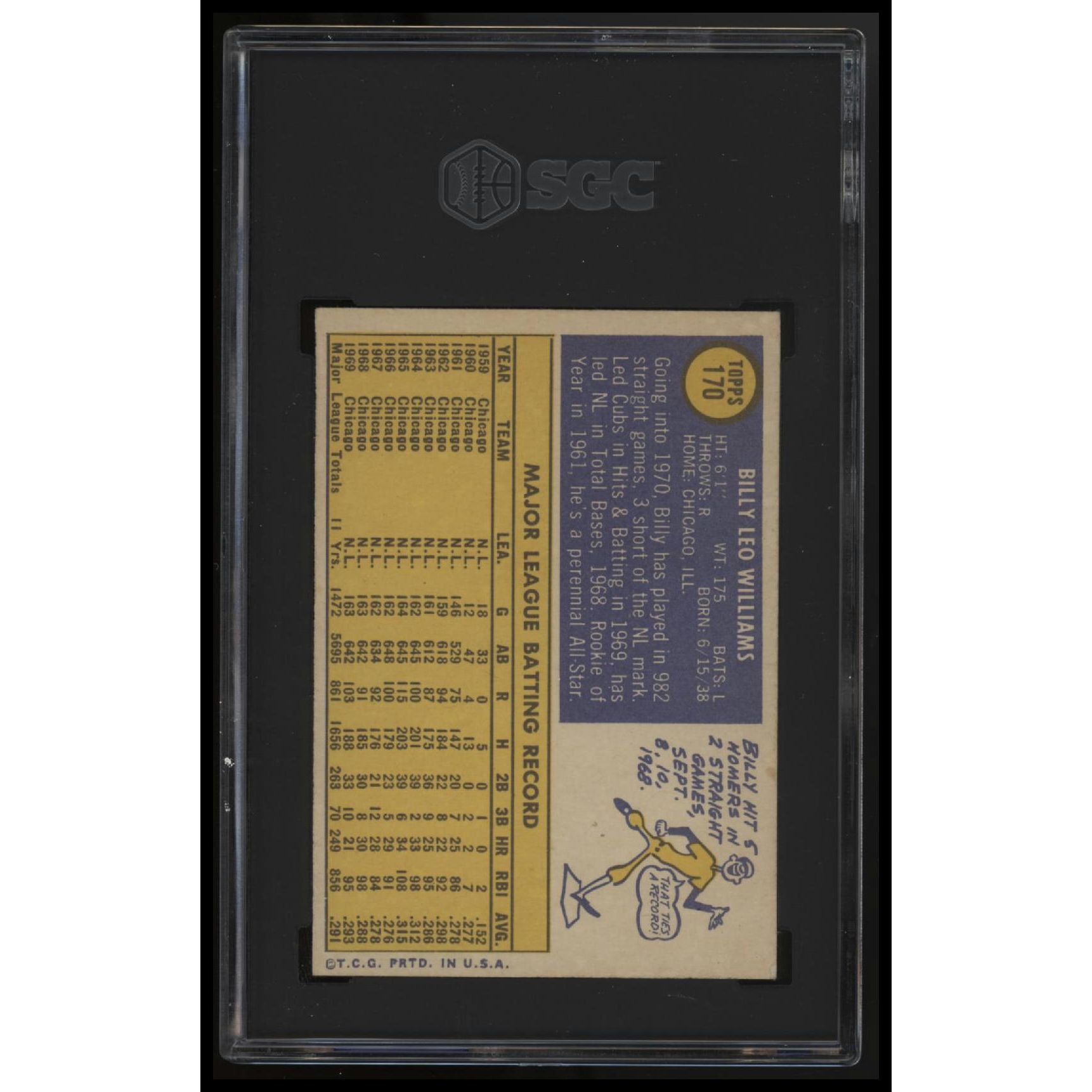 This is a nice example of a 1970 Topps #170 Billy Williams Other important information about this card:SGC 5.5 1In 1970 Billy Williams played for the Chicago Cubs.Please check out our other listings for more great cards.