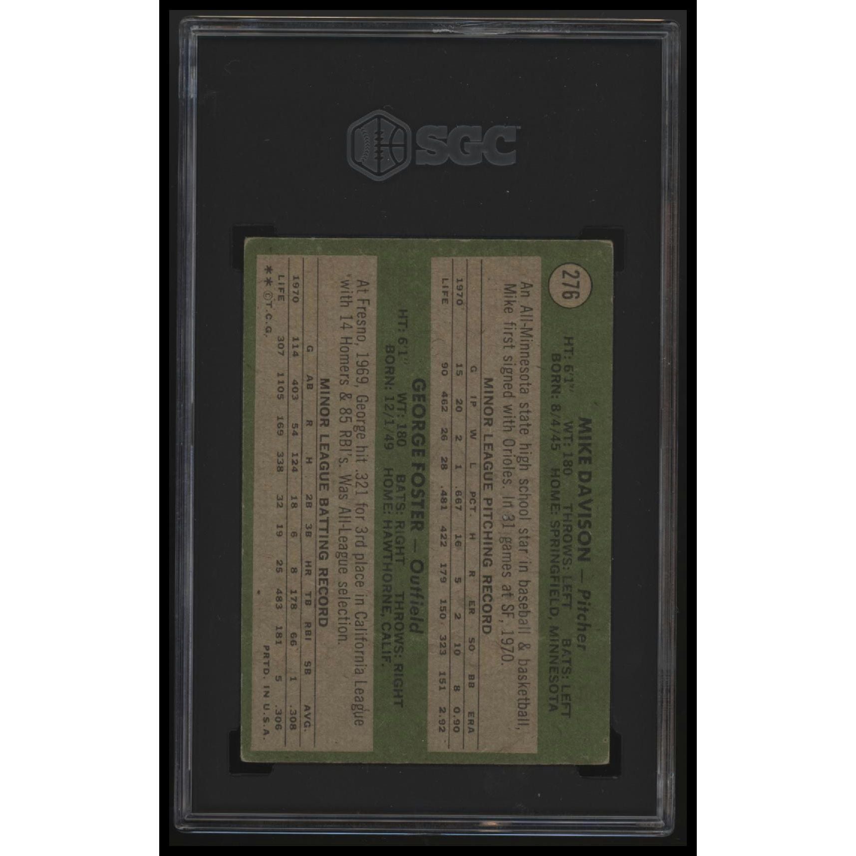 This is a nice example of a 1971 Topps #276 Giants 1971 Rookie Stars (Mike Davison / George Foster) RS, RC Other important information about this card:SGC 2 1RC,SGC 2In 1971 Giants 1971 Rookie Stars (Mike Davison / George Foster) RS, RC played for the San Francisco Giants.Please check out our other listings for more great cards.