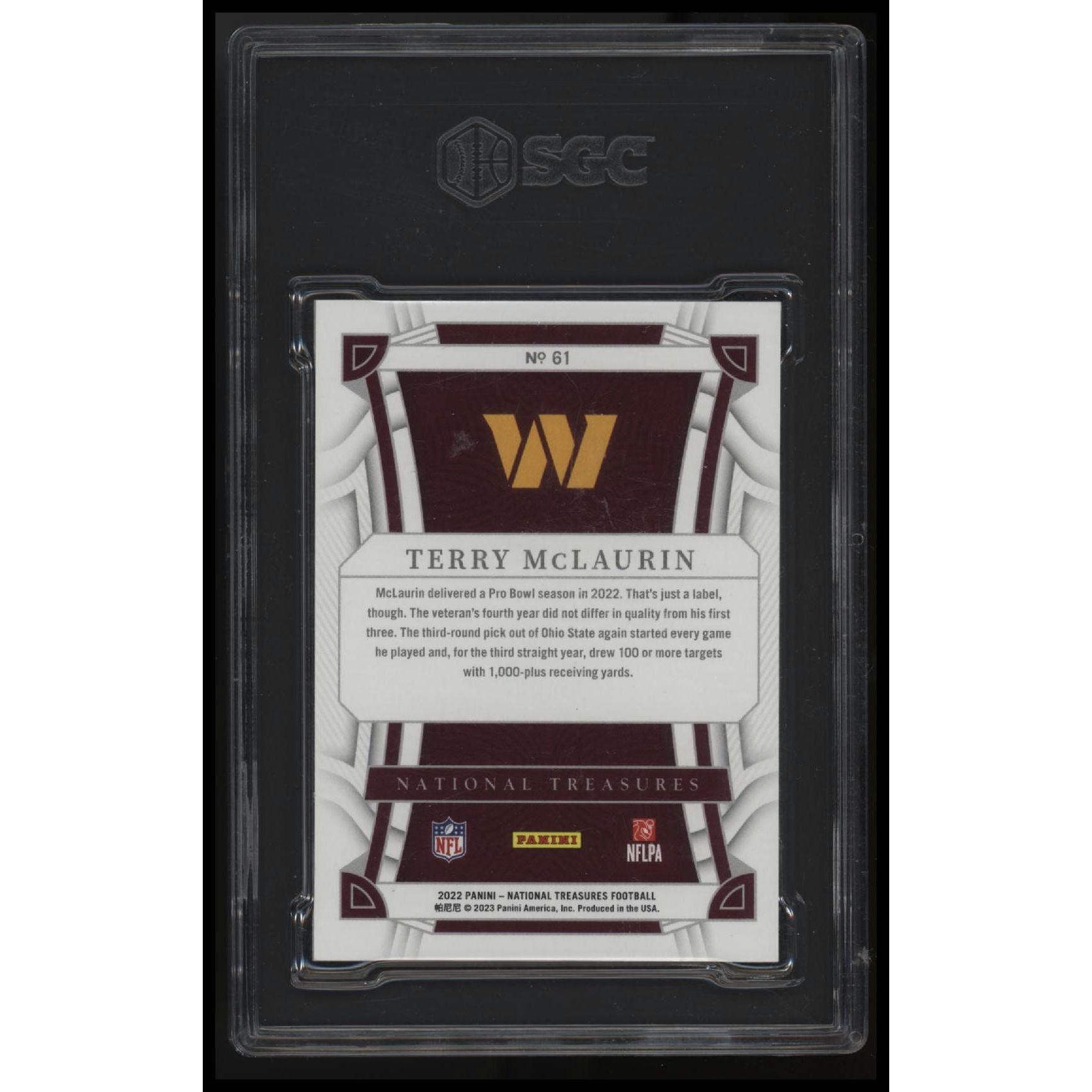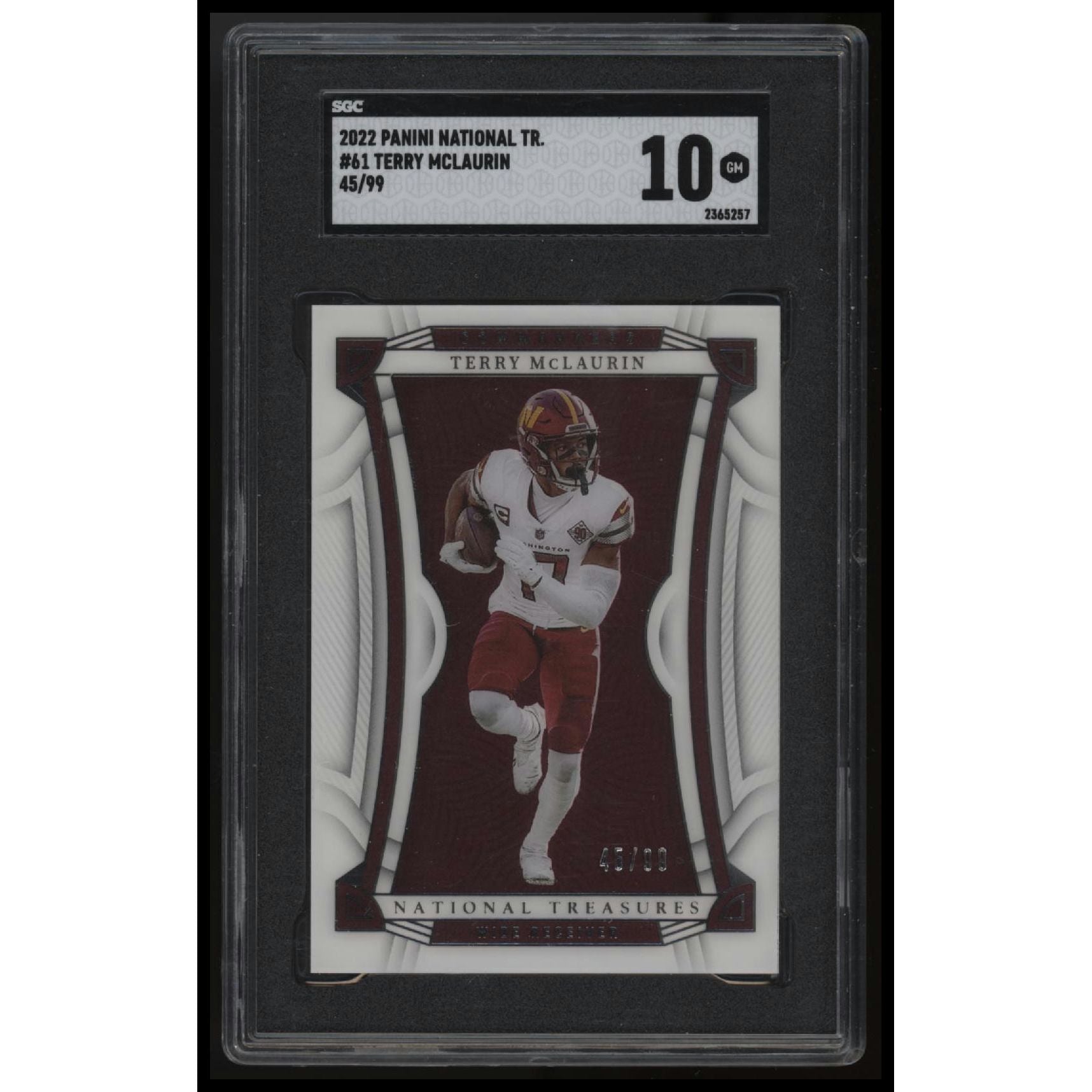 This is a nice example of a 2022 Panini National Treasures #61 Terry McLaurin Other important information about this card:SGC 10 1SNIn 2022 Terry McLaurin played for the Washington Commanders.Please check out our other listings for more great cards.